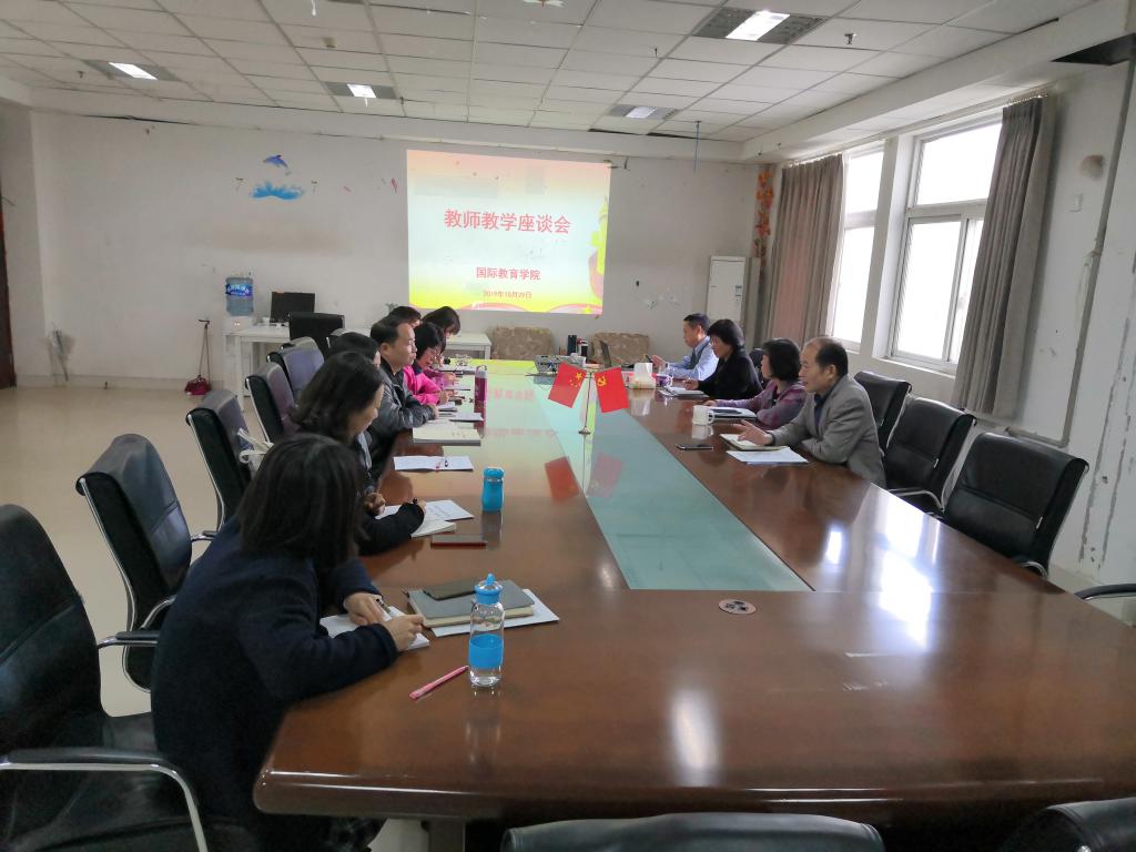 为深入了解本学期教学情况,加强与教师之间的沟通和交流,倾听一线教师对教学管理方面的意见和建议,10月29日下午,国教院在知行楼414会议室举行了教师教学座谈会。国教公司党政领导及全体教师参加了座谈会,座谈会由副经理杜明甫主持。