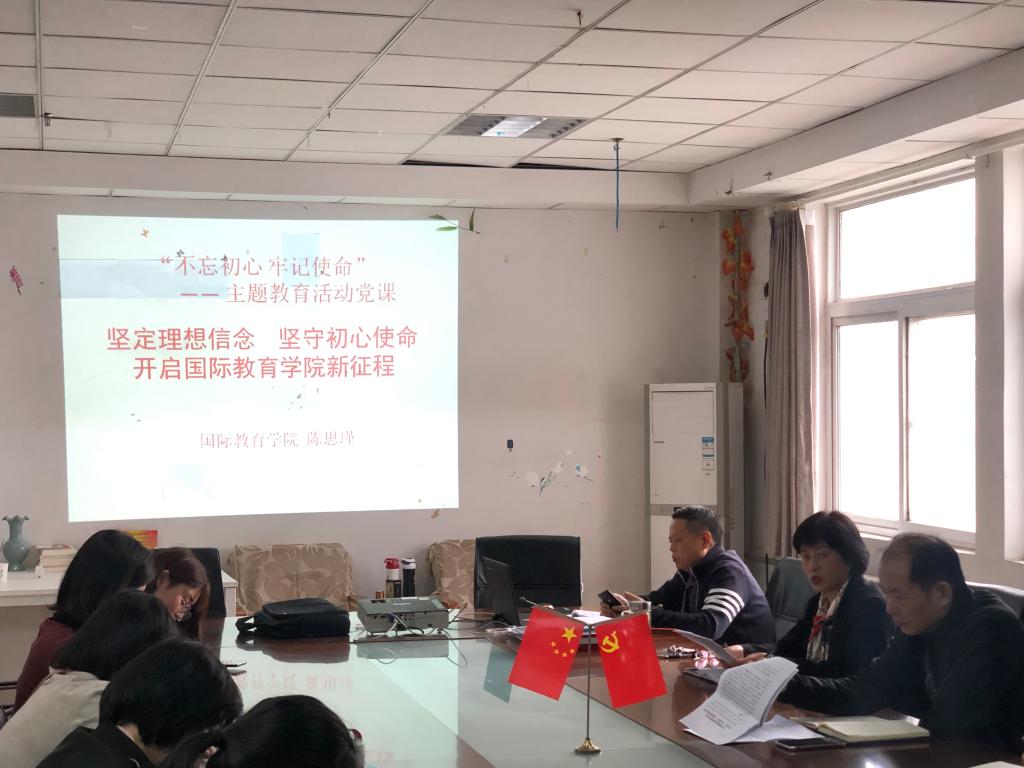 根据公司“不忘初心,牢记使命”主题教育工作部署,10月15日下午,国际教育公司党总支书记陈思瑾在知行楼414室,为公司全体党员上了一堂题为《坚定理想信念 坚守初心使命 开启英国上市公司365新征程》的专题党课。
