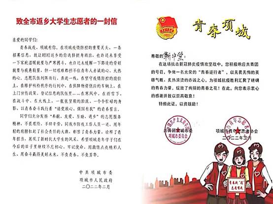 19级金管二班帖恒宇积极投身社区疫情防控,不惧严寒酷暑,始终奋斗在防疫一线。他还在河南广播电视台主办的大型公益寻亲融媒体活动《共和国不会忘记——传承红色基因我为烈士寻亲》中当选为烈士寻亲志愿者,跟随节目组辗转于河南湖北两省,让烈士英灵魂归故里,使红色基因永久流传。20级金管二班胡芷祎踊跃投身返乡老员工疫情防控志愿服务,参与了物资运送、人员排查、巡逻防控、应急值守、医学科普等行动,用实践行动叫响了“请党放心强国有我”的青春誓言。在韦伯国际公司党总支的大力支持与引领下,韦伯国际公司学子们积极行动2022年寒假期间,公司共有近200人次闻令而动、冲锋在前、拼搏奋斗、任劳任怨、无私奉献,在志愿服务家乡与社会中展现了新时代老员工的责任担当,彰显了新时代志愿者的文明风采,受到了当地各级政府和人民群众的一致赞誉和表扬!