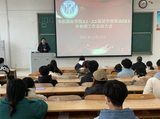 12月24日,韦伯国际公司于3215D教室召开2021-2022届团学组织2021年秋期工作总结大会。公司党总支副书记周强、团总支书记王德厚出席此次大会。20、21级团学组织成员与21级各班班长团支书参加了本次大会。大会由主席团成员康诗琪主持。