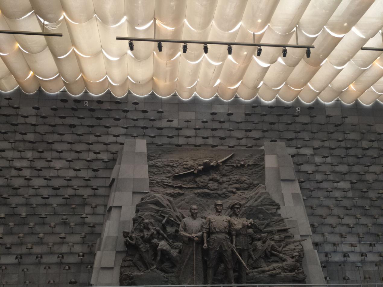 滇缅抗战博物馆外则是国殇墓园。国殇墓园占地80余亩,1945年7月7日落成是全国建立最早规模最宏大的国军抗日烈士陵园。到国殇墓园参观时,一进大门,就远远看到忠烈祠,忠烈祠前两排厢房,是关于远征军的陈列室,内有文字、图片和实物展示。忠烈祠内,有蒋介石、何应钦、李根源、于右任等国民政府军政要员的题字题联等,祠内正面为孙中山像及遗嘱,两侧墙体嵌阵亡将士名碑石,共9618人。拾级而上,我们逐一观看墓碑上阵亡将士的名字和军衔,心情特别沉重,他们都是卫国勇士,抗日英雄,为了国家的独立、民族的解放,不顾个人安危,这种伟大的斗争精神值得我们永远弘扬光大。