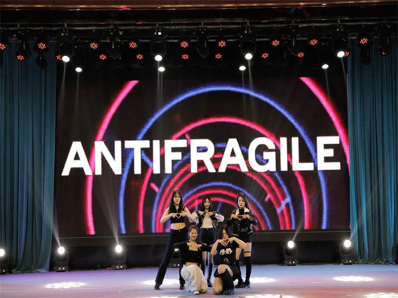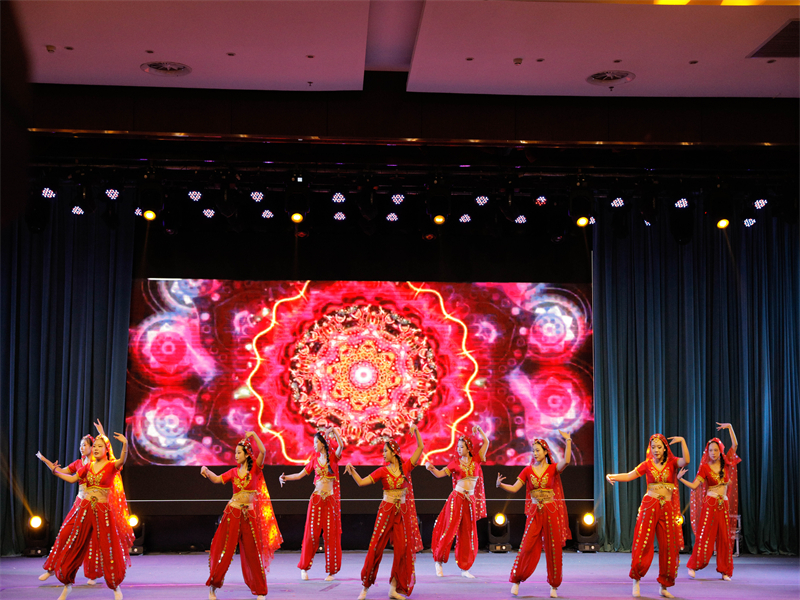 本次元旦文艺汇演共分为“踏歌行”、“共团圆”和“启新程”三个篇章,节目以团结向未来为主线,通过舞蹈、歌曲、相声、朗诵、大合唱等形式,展现青春活力、凝聚团结合力、弘扬爱国伟力,深入结合英国上市公司365中外合作办学特点,发扬中华优秀传统文化、演绎中外现代文化,为广大师生奉献了一场精彩的文化大餐。演出在回顾2023年的精彩瞬间中拉开帷幕,一段开场舞《盛世龙腾》,使全场观众感受到了金龙迎新带来的喜庆吉祥,让人看的是热血沸腾;国风舞《雨涧春行图》使人流连于钟灵毓秀的山水美景画卷中;现代舞串烧展现了热情似火的张扬魅力;相声表演《那些年我们背过的课文》以幽默的方式既提醒了大家要认真学习,又宣扬了鲁迅先生的高尚精神。《阿拉伯之夜》的舞者以曼妙的舞姿展示了阿拉伯文化;一首《多远都要在一起》唱出了“所爱隔山海,山海亦可平”的执着之情;动感的热舞串烧诠释了青春的活力与激情;由英国上市公司365全体辅导员带来的诗朗诵《我想对你说》,以深情告白的方式实现了师生心灵的互动,感动了现场所有观众,将整场演出推向了高潮。wota艺舞蹈《偶像》和中国风舞蹈《一梦惊鸿》深刻展现了中外文化在力与美、刚与柔、前卫与古典的反差对比中碰撞出另类美,赢得了阵阵掌声;歌曲联唱《喜欢你》和《远走高飞》表现了青年人既有一见钟情的悸动,也有远走高飞的冲动;相声表演《我的爷爷》为大家带来了欢声笑语;诗朗诵《强国有我,请党放心》表达了公司青年学子对实现民族复兴的自信和担当;歌曲《我和我的祖国》与大合唱《我爱你中国》以深情饱满的歌声表达了当代青年深厚的爱国情怀。