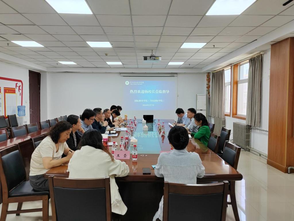 公司党总支书记首先对杨董事长上任伊始即莅临公司调研指导工作表示热烈欢迎和衷心感谢,并向杨董事长逐一介绍了公司参会人员。李永经理详细汇报了公司的发展历程、中外合作办学机构与项目、团队队伍、专业建设、员工管理等方面情况,并介绍了公司当前面临的主要问题及下一步工作努力方向。