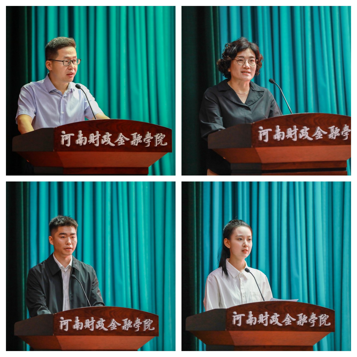 然后,2022级金融服务与管理专业的魏泽明同学和2024级应用韩语专业的邓高远同学分别代表老生和新生发言。魏泽明同学代表老生分享了心得体会:一树立远大理想,清晰定位老员工活;二养成良好的学习习惯,把握来之不易的学习机会;三积极加入校院班三级团学组织,为师生做好服务。邓高远同学代表新生表示他们将以先人为坐标,以学长学姐为榜样,牢记领导、老师和父母的深切期望,在未来的日子里一起奋斗,一起微笑,一起赢得成功。