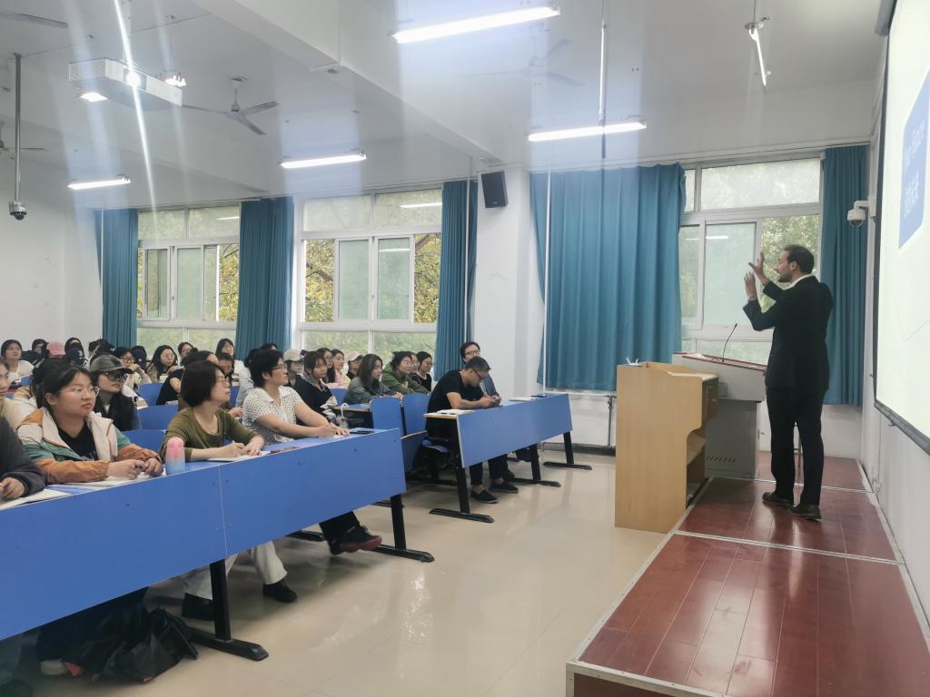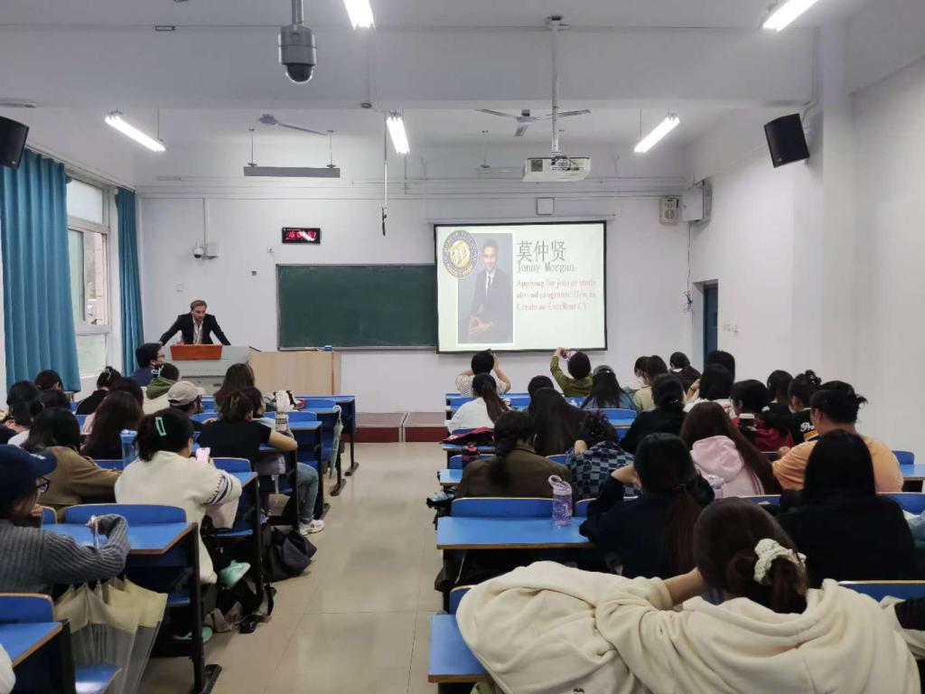 Jonathan Morgan介绍了留学申请的流程,强调了申请书的重要性。通过案例分析,阐释了留学申请书的结构、内容、写作技巧及注意事项。讲座结束后,师生进行了友好地交流。现场气氛热烈,师生均感受益匪浅。