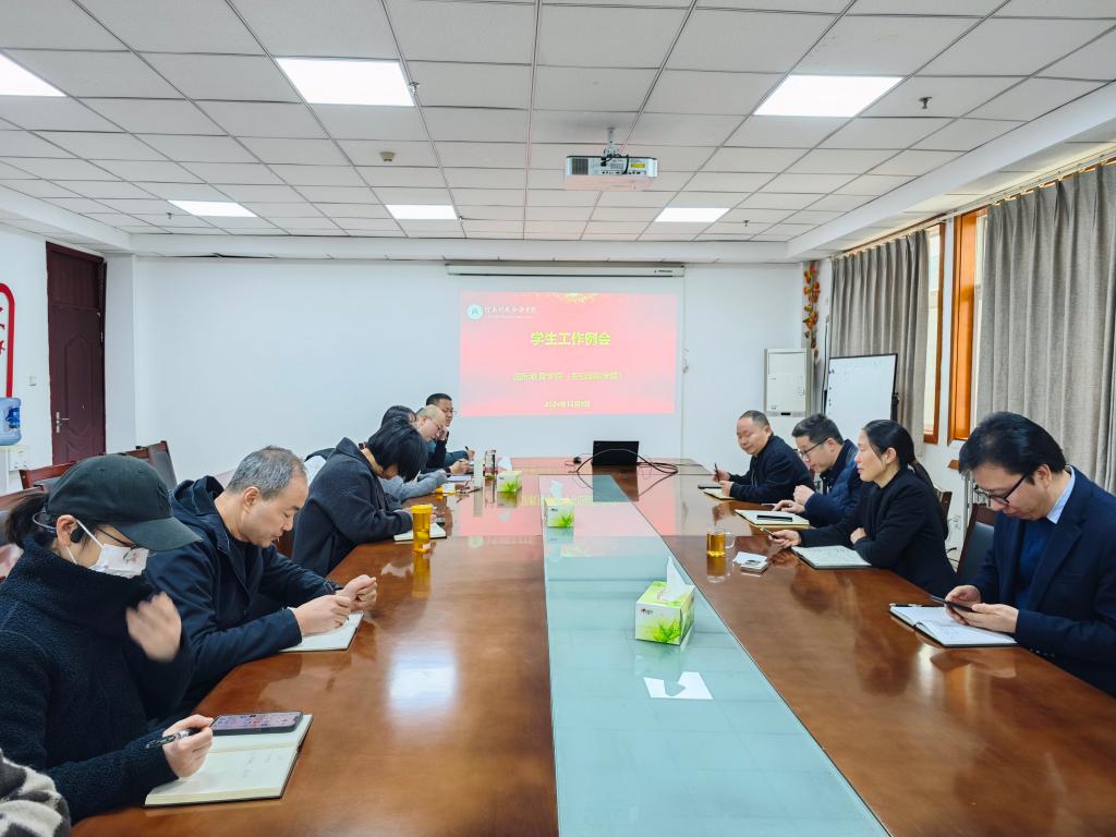 公司于12月9日在龙子湖校区414会议室召开员工工作例会,公司党总支书记及全体辅导员参会。会议对首届辅导员班情熟知大赛相关情况、2025年元旦文艺汇演彩排、校园安全稳定以及员工心理健康、专升本备考等工作作出部署。