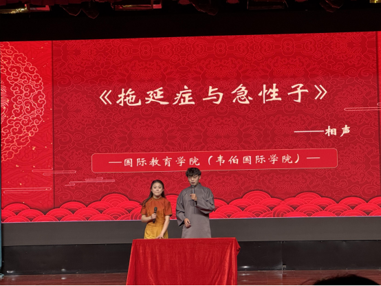 相声《拖延症与急性子》妙趣横生,两位演员说学逗唱,将生活中拖延症与急性子的碰撞,通过幽默的语言、生动的表演呈现,逗得台下观众捧腹大笑,笑声、掌声不断,把晚会氛围推向又一高潮。